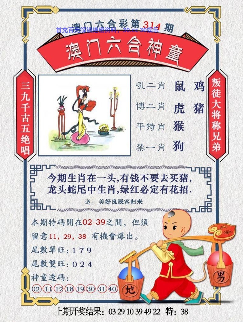 | 314期:绝杀三肖❀【兔狗马】开:羊23准 |